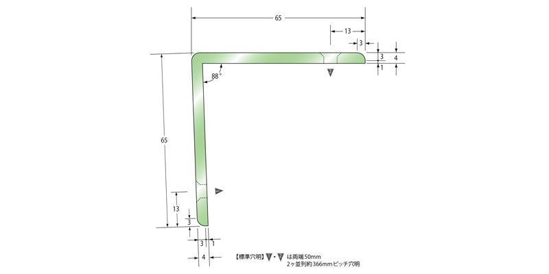 穴あけ加工済み(両端50mm2ヶ並列約366mmピッチ)