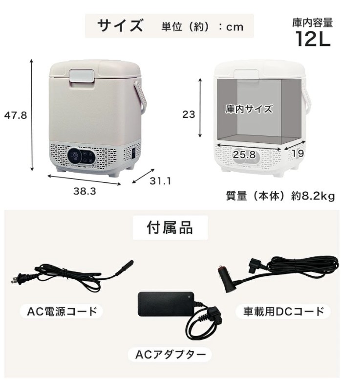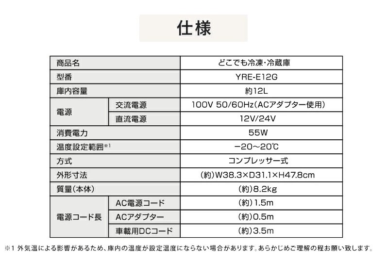 コンプレッサー式 AC電源 DC電源 2WAY電源対応 どこでも冷凍・冷蔵庫  キャスター無し