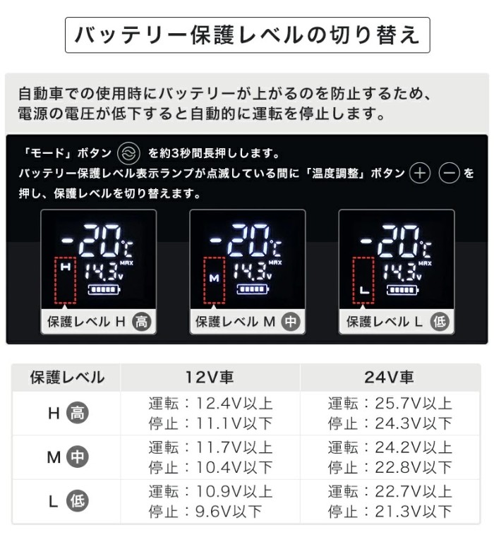 ・車載利用時のバッテリー保護レベルが3段階で設定可能です